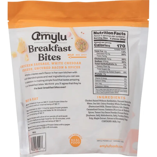 AmyLu Cheddar & Bacon Chicken Sausage Breakfast Bites, 12 oz