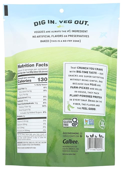 Harvest Snaps Baked Green Pea Snacks Lightly Salted, 3.3 oz