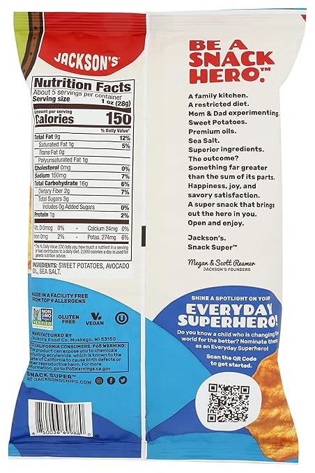 Jackson's Chips Avocado Oil Wavy Sweet Potato Sea Salt Chips, 5 oz