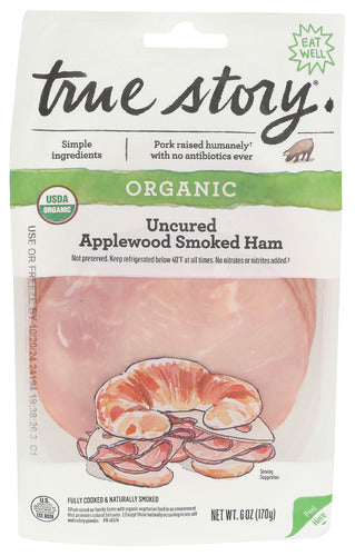 True Story Organic Sliced Uncured Applewood Smoked Ham, 6 oz