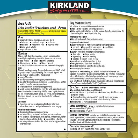 Kirkland Signature Ibuprofen, 200 mg, 500 Tablets, 2 Count