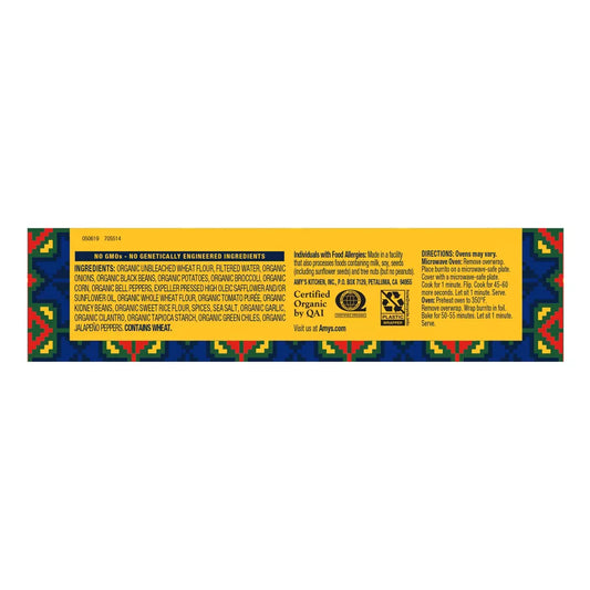 Amy's Organic Dairy-Free Black Bean and Vegetable Burrito, 6 oz