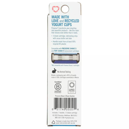 Preserve Blue Shave 5 Razor Handle and 1 Blade, 6 Count