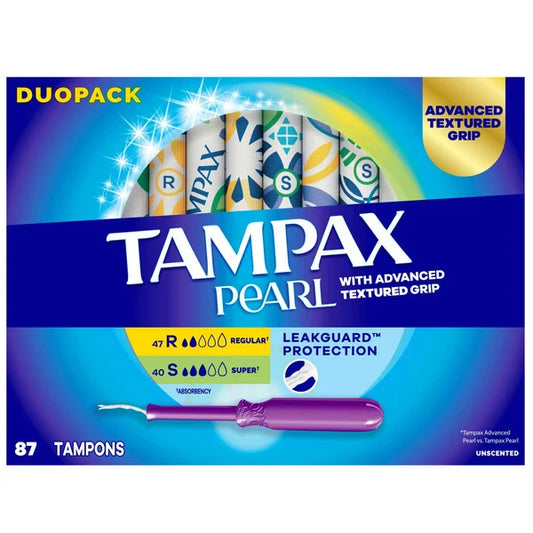 Tampax Pearl Tampons, Regular and Super, Variety Pack, 87 ct