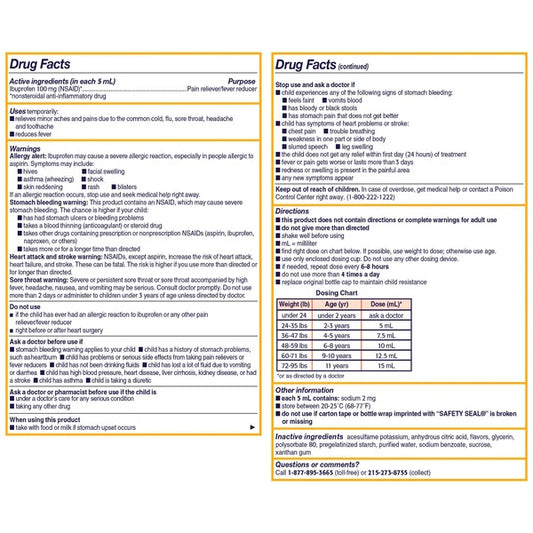 Children's Motrin Dye-Free Berry Flavor Suspension, Fever Reducer & Pain Relief, 3 Count