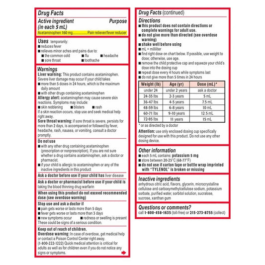 Children's Tylenol Liquid Pain Relief & Fever Medicine, Dye-Free Cherry Flavor, 12 Fluid Ounces
