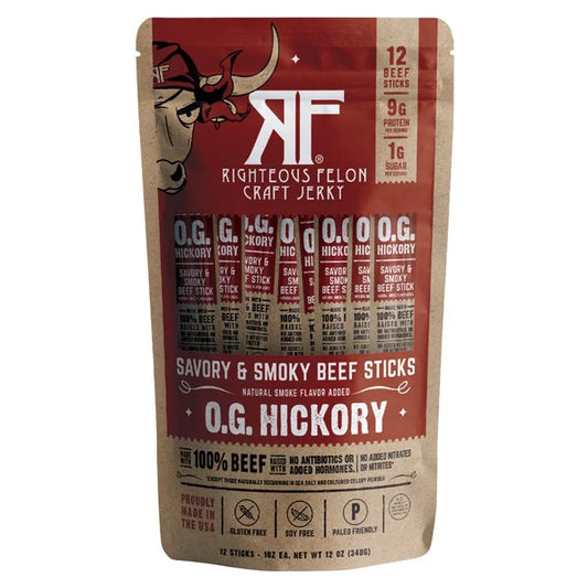 Righteous Felon Craft Jerky, O.G. Hickory Beef Stick, 1 oz, 12-count