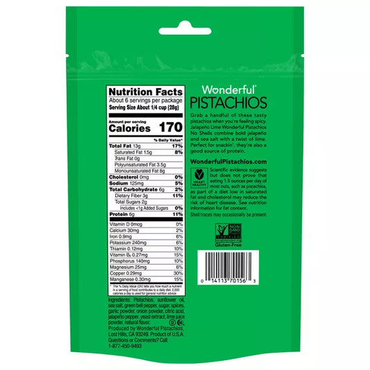 Wonderful Jalapeno Lime No Shell Pistachios, 5.5 oz