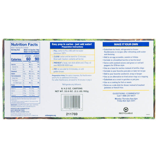 Idaho Spuds Golden Grill Hashbrown Potatoes, 4.2 oz, 8-count