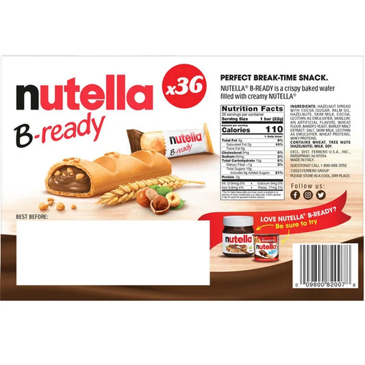 Nutella B-Ready Crispy Wafers, 0.7 oz, 36 ct