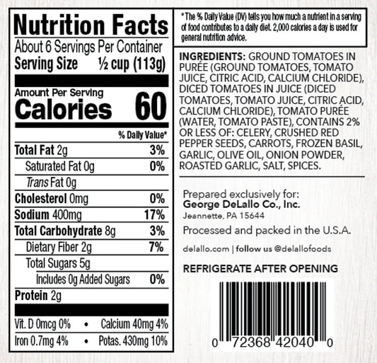 Delallo Pomodoro Fresco Tomato Basil Sauce, 25.25 oz
