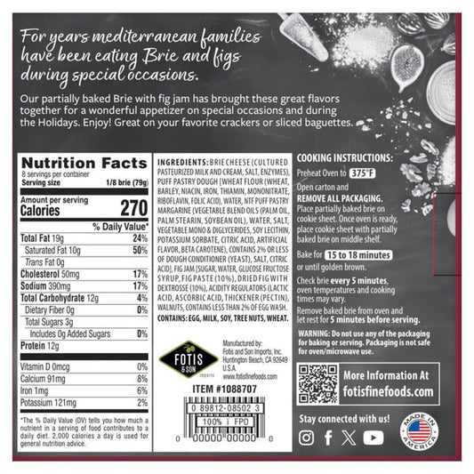 Fotis Baked Brie with Fig Jam & Chopped Walnuts, 22 oz