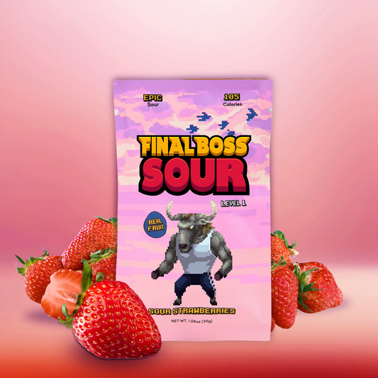 Sour Boss Level 1 Strawberries (12 pack) Dried Fruit Sour Snack