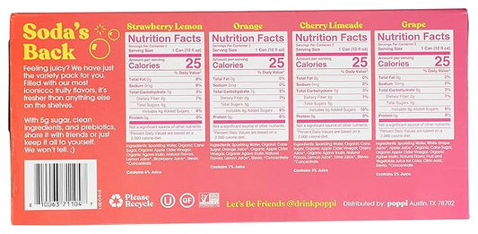 Poppi Prebiotic Soda Juicy Faves Variety Pack 15 ct, 12 oz