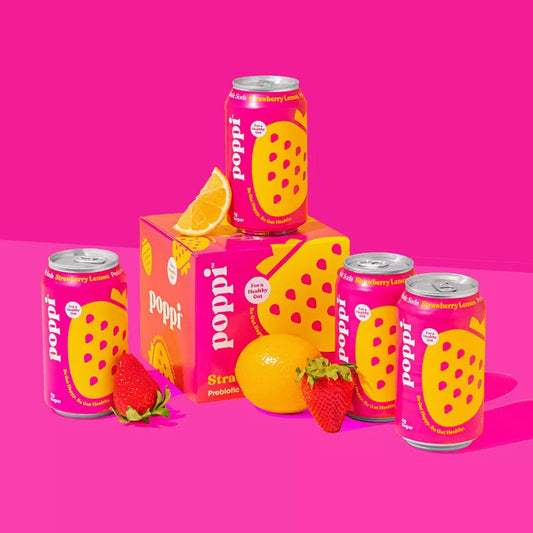 Poppi Strawberry Lemon Prebiotic Soda, 4 Count