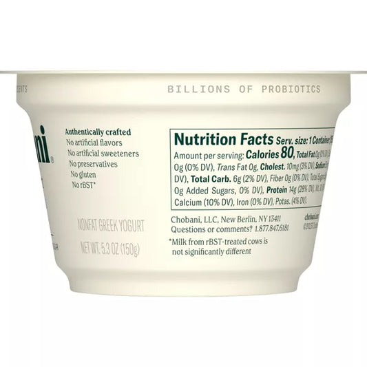 Chobani® Non-Fat Plain Greek Yogurt, 5.3 oz