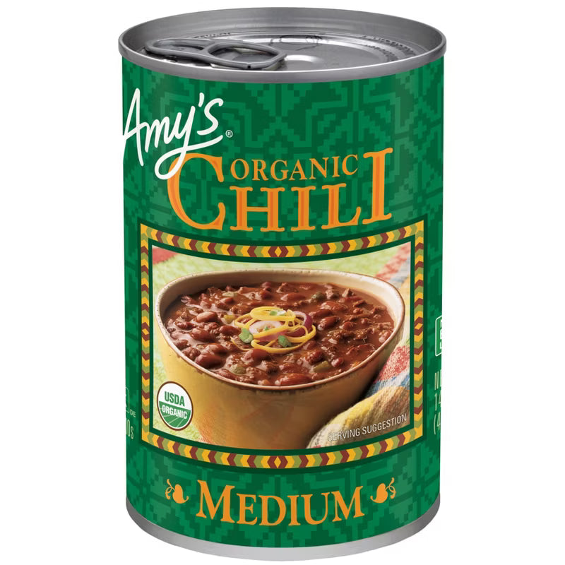 Amy's Organic Medium Chili, 14.7 oz, is a hearty and flavorful meal option. Made with organic red beans, tofu, and vegetables, this chili is simmered in a thick, Mexican-style sauce. It is gluten-free, dairy-free, and vegan-friendly, making it suitable for various dietary preferences. Enjoy the rich taste and wholesome ingredients of Amy's Organic Medium Chili for a convenient and satisfying meal.