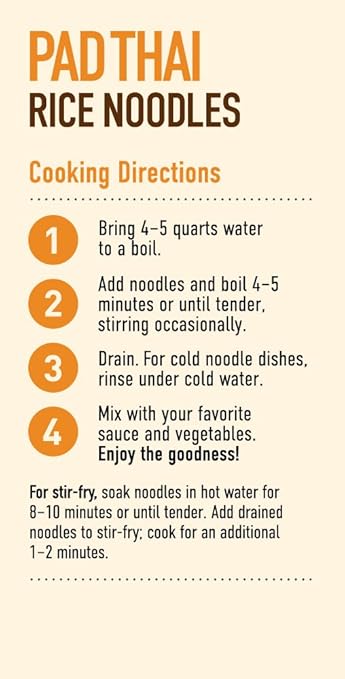 Annie Chun's Pad Thai Rice Noodles, 8 oz are a versatile and gluten-free option for creating authentic Asian dishes. Made from rice flour, these noodles are perfect for stir-fries, savory soups, or chilled salads. They cook quickly and easily, making them a convenient choice for a variety of meals. With their light texture and ability to absorb flavors, they are a great addition to any pantry.