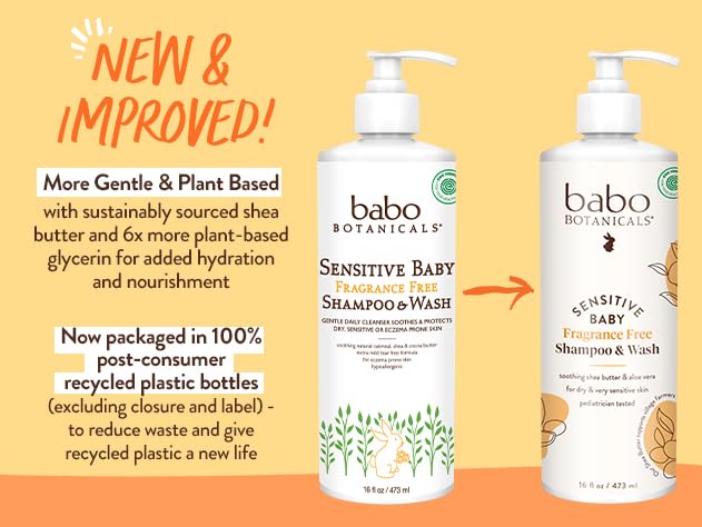 Babo Botanicals Sensitive Baby Fragrance-Free 2-in-1 Shampoo & Wash, 16 oz, is a gentle and nourishing option for babies and kids with sensitive skin. This mild cleanser is enriched with sustainably sourced shea butter, calendula, and aloe vera, providing a soothing and moisturizing experience. It is EWG Verified, ensuring the highest level of safety and quality. Free from fragrances, essential oils, and artificial ingredients, this shampoo and wash is perfect for daily use on delicate skin. Enjoy the benefits of Babo Botanicals Sensitive Baby Fragrance-Free 2-in-1 Shampoo & Wash, a safe and effective choice for your little one's bath time.