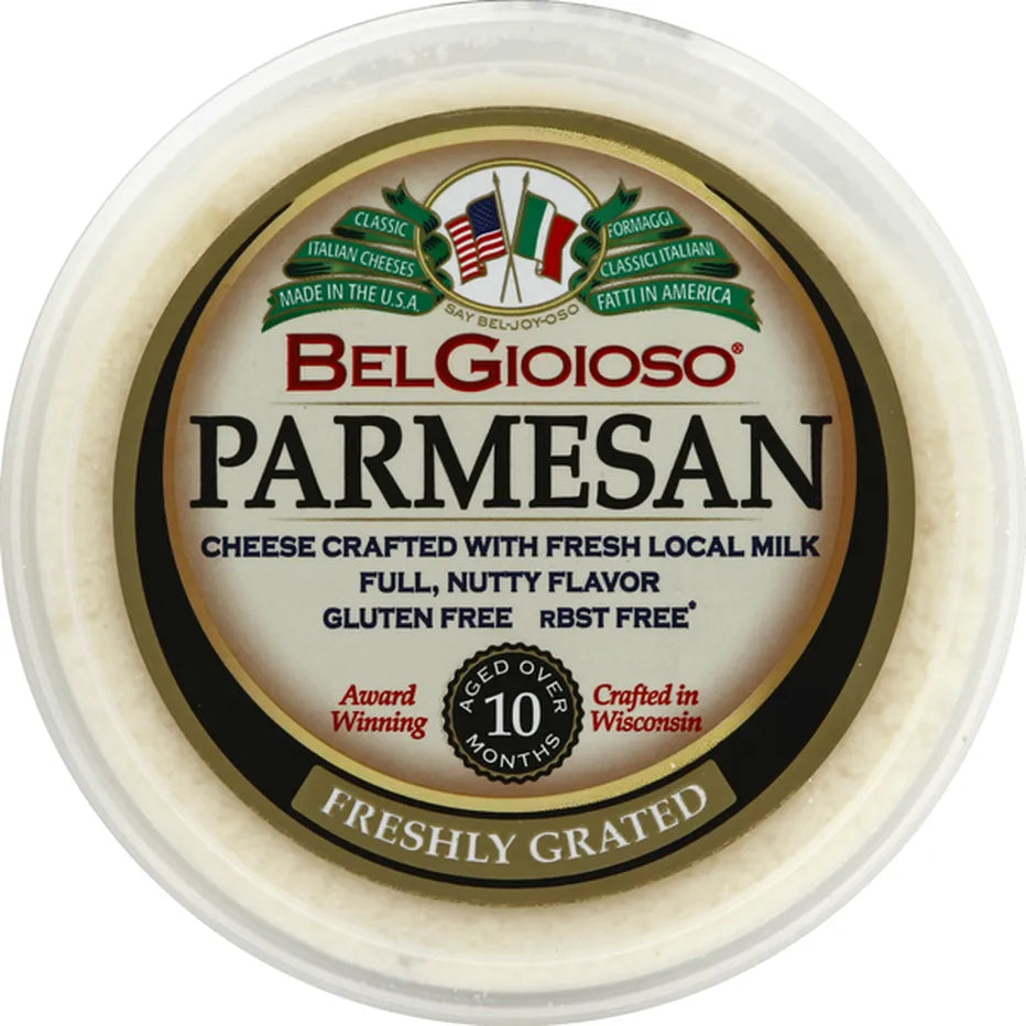 Enhance your dishes with the rich and nutty flavor of BelGioioso Parmesan Grated Cheese. This 5 oz container features aged Parmesan cheese that's finely grated for convenience. Ideal for sprinkling over pasta, salads, soups, or any of your favorite recipes, it adds a delicious and authentic Italian taste to your meals. Made with high-quality ingredients and aged to perfection, BelGioioso Parmesan Grated Cheese offers a premium cheese experience in every sprinkle.