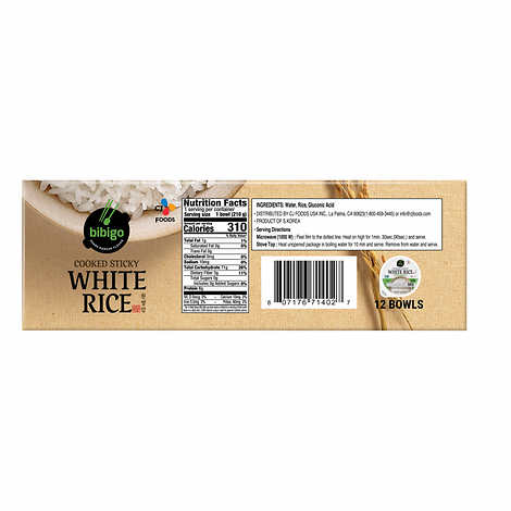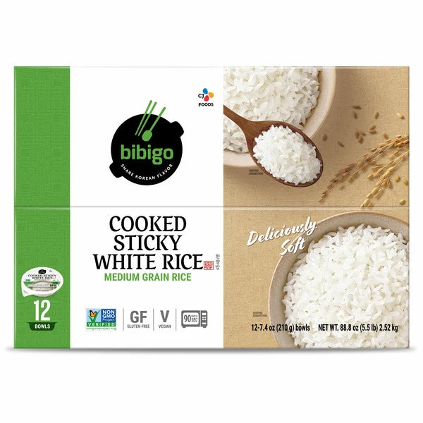 Bibigo Cooked Sticky White Rice Bowls are a convenient and delicious option for quick meals. This 12-count pack contains medium-grain sticky white rice, fully cooked and ready to eat. Each bowl is individually packaged, making it easy to heat up in the microwave for a fast and satisfying side dish or base for your favorite meals. Ideal for busy days when you need a quick and tasty addition to your lunch or dinner.