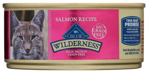 Blue Buffalo Wilderness Grain Free Premium Wet Cat Food Salmon Recipe is a high-protein, grain-free option for your feline friend. This 5.5 oz can features real salmon as the primary ingredient, providing essential omega-3 fatty acids and protein to support your cat's overall health. The recipe also includes wholesome ingredients like chicken liver, potatoes, and flaxseed, ensuring a balanced and nutritious meal. Free from chicken by-product meals, corn, wheat, soy, artificial flavors, and preservatives, this wet cat food is designed to meet the unique nutritional needs of adult cats. Enjoy the convenience and quality of Blue Buffalo Wilderness Salmon Recipe in your cat's diet.