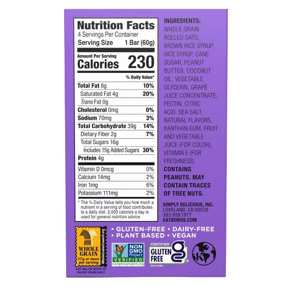 Bobo's Oat Bars Grape PB&Js, 8.4 oz