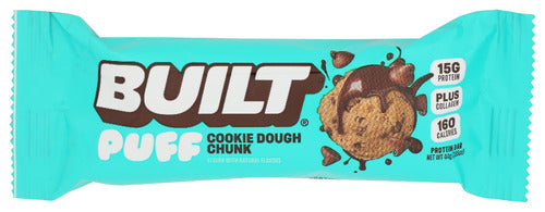 Built Cookie Dough Chunk Puff Bar is a delightful and nutritious protein bar. This 1.55 oz bar features a soft, fluffy cookie dough-flavored center, topped with real cookie dough pieces and covered in dark chocolate. It's perfect for satisfying your sweet tooth while providing a nutritious boost. With high-quality protein and collagen, it's an ideal post-workout snack, midday treat, or guilt-free dessert. Enjoy the rich taste of cookie dough combined with the benefits of nutritional support in this convenient and delicious bar.