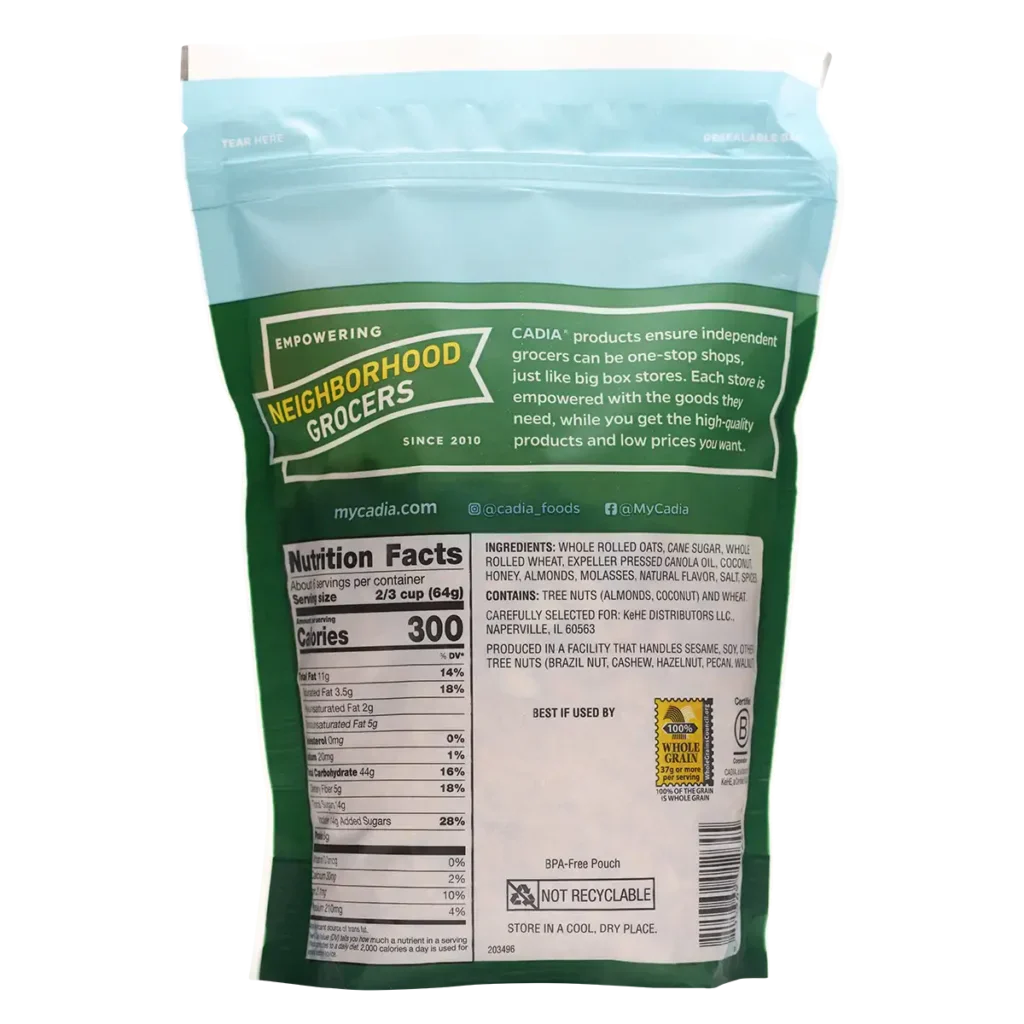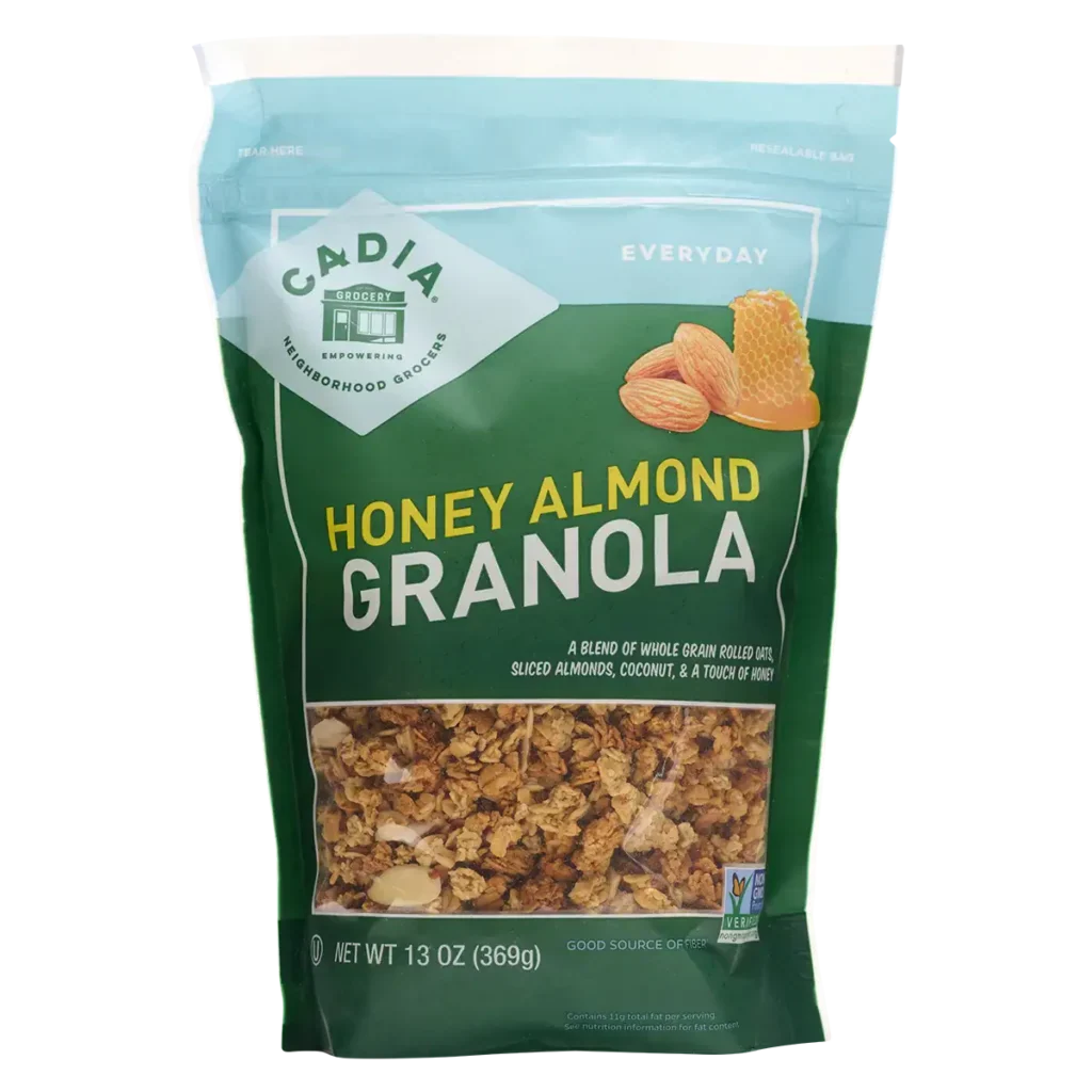 Cadia Everyday Honey Almond Granola, 13 oz, is a delightful blend of whole rolled oats, sliced almonds, and coconut, all lightly sweetened with a touch of honey. This granola offers a satisfying crunch and a rich, nutty flavor, making it a perfect addition to your breakfast or snack routine. Enjoy it with yogurt, milk, or as a topping for smoothie bowls. The combination of wholesome ingredients ensures a nutritious and delicious start to your day, while the natural sweetness of honey adds just the right amount of indulgence. This granola is a versatile and tasty option for those seeking a healthy and flavorful treat.