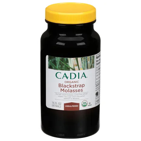 Cadia Organic Blackstrap Molasses, 16 oz, is a rich and nutrient-dense sweetener made from the final pressing of organic sugarcane. This molasses is packed with natural minerals like iron, calcium, and potassium, offering a deep caramelized flavor with a touch of natural sweetness. It is unsulfured, meaning it is free from sulfur dioxide preservatives, ensuring a pure and wholesome product. Ideal for baking, marinades, or as a healthful addition to smoothies, Cadia Organic Blackstrap Molasses brings a robust and earthy taste to your recipes. USDA Organic, non-GMO, and free from artificial additives, it is a versatile and nutritious pantry staple.