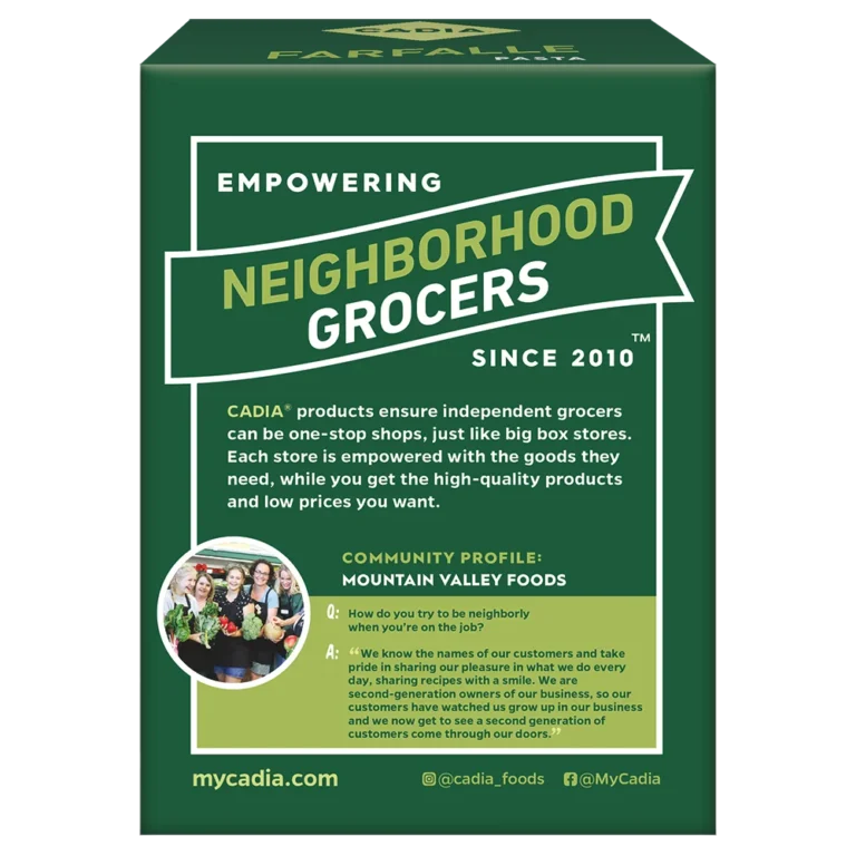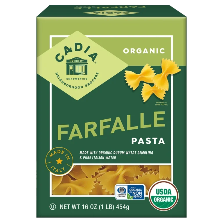 Cadia Organic Farfalle Pasta, 16 oz, is a high-quality organic pasta made from premium durum wheat semolina. Known for its distinctive bow-tie shape, this pasta is perfect for holding onto sauces and adding a delightful texture to your dishes. Free from artificial additives and preservatives, it provides a wholesome and natural taste. Ideal for a variety of recipes, from light salads to hearty main courses, this farfalle pasta brings a touch of elegance to your meals.