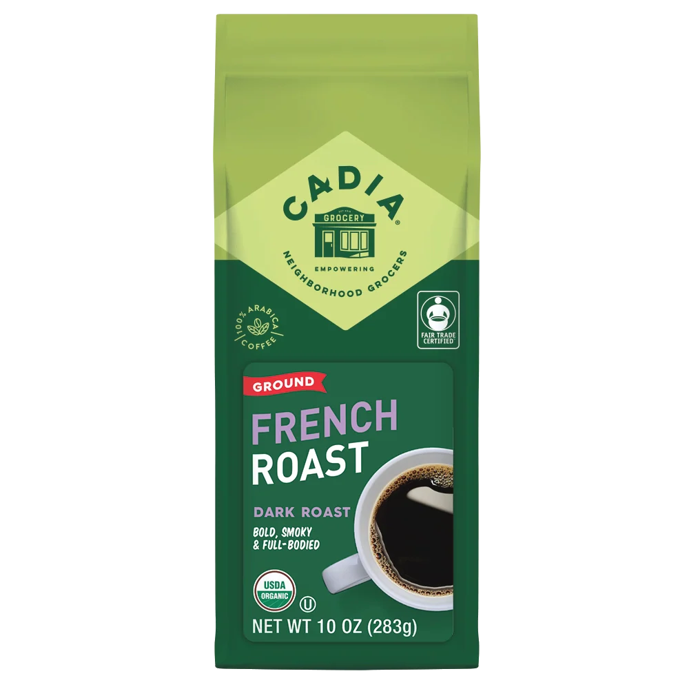 Cadia Organic French Roast Coffee is a bold and flavorful blend designed for those who appreciate a rich and intense coffee experience. This 10 oz package features organic beans that are expertly roasted to a dark, deep finish, highlighting the robust flavors of dark chocolate and toasted nuts. The full-bodied profile, combined with a smoky, bittersweet aftertaste, makes this French roast perfect for starting your day with a strong, invigorating cup. Enjoy the exceptional quality and taste of Cadia Organic French Roast Coffee in your favorite brewing method, whether it's a French press, drip coffee maker, or espresso machine.