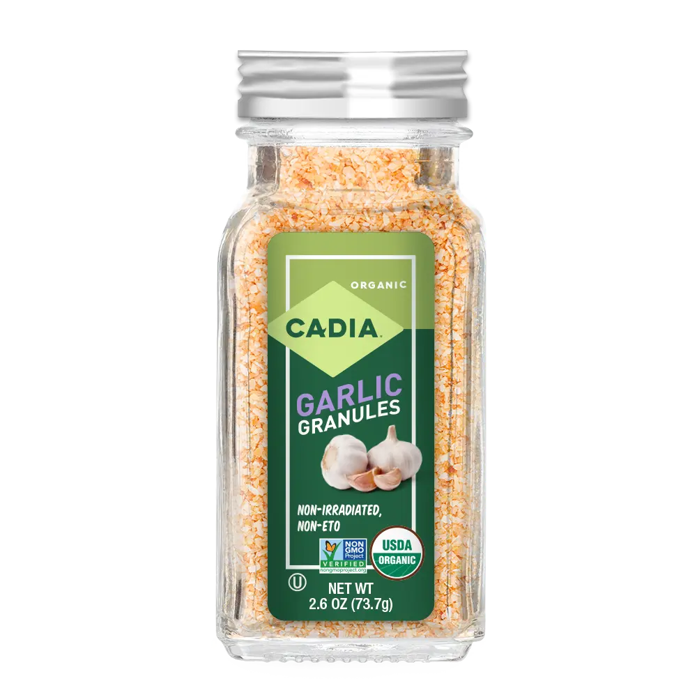 Cadia Organic Granulated Garlic, 2.6 oz, is a flavorful and aromatic seasoning made from 100% organic garlic. This granulated form offers a robust garlic flavor that disperses evenly throughout dishes, making it perfect for soups, sauces, marinades, and spice blends. Its mellowed yet confident aroma enhances the taste of your culinary creations without the texture of minced garlic. Enjoy the rich and savory taste of this versatile organic granulated garlic in your kitchen!