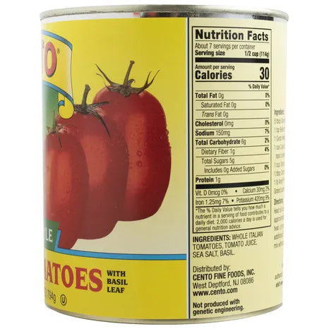 Cento San Marzano Peeled Tomatoes, 28 oz, are high-quality Italian tomatoes known for their sweet flavor and low acidity. These tomatoes are grown in the Sarnese Nocerino area of Italy, near Mount Vesuvius, and are hand-picked when ripe. They are peeled to save prep time and are perfect for making homemade sauces, soups, and other tomato-based dishes. The can contains whole peeled tomatoes, tomato puree, sea salt, and basil leaf, with no artificial flavors, colors, or preservatives.