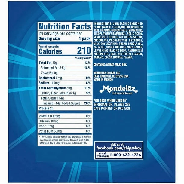 Chips Ahoy! Cookies Chocolate Chip, 24 ct, 1.5 oz is a classic and delicious snack option for cookie lovers. Each pack contains 24 individual 1.5 oz bags of chocolate chip cookies, making it convenient for on-the-go snacking or sharing. These cookies are packed with chocolate chips, delivering a sweet and satisfying treat with every bite. Ideal for lunchboxes, road trips, or anytime you need a quick and tasty snack, Chips Ahoy! chocolate chip cookies are a timeless favorite.
