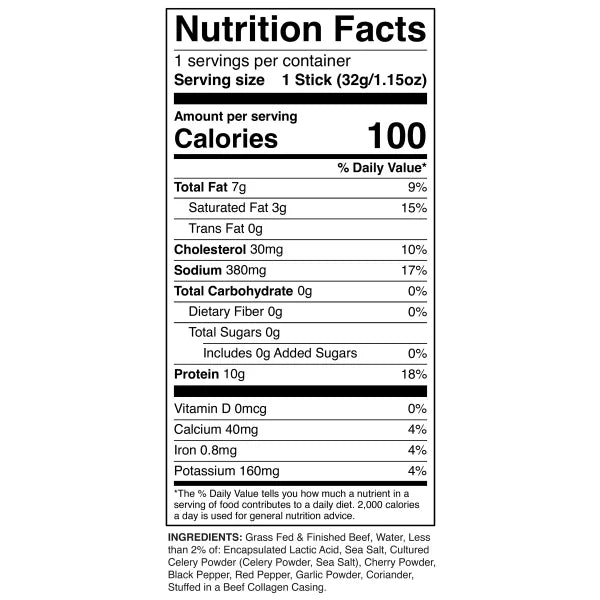 Chomps Original Beef Sticks are made from 100% grass-fed and finished beef. Each stick is 1.15 oz and individually wrapped, making them super convenient for snacking on the go. You get 12 sticks in the pack, and each one delivers 10 grams of protein with no sugar added. They're Whole30 approved, gluten-free, and free from artificial preservatives or ingredients. The flavor is mild but savory, with a natural smokiness that makes them satisfying without being overpowering.