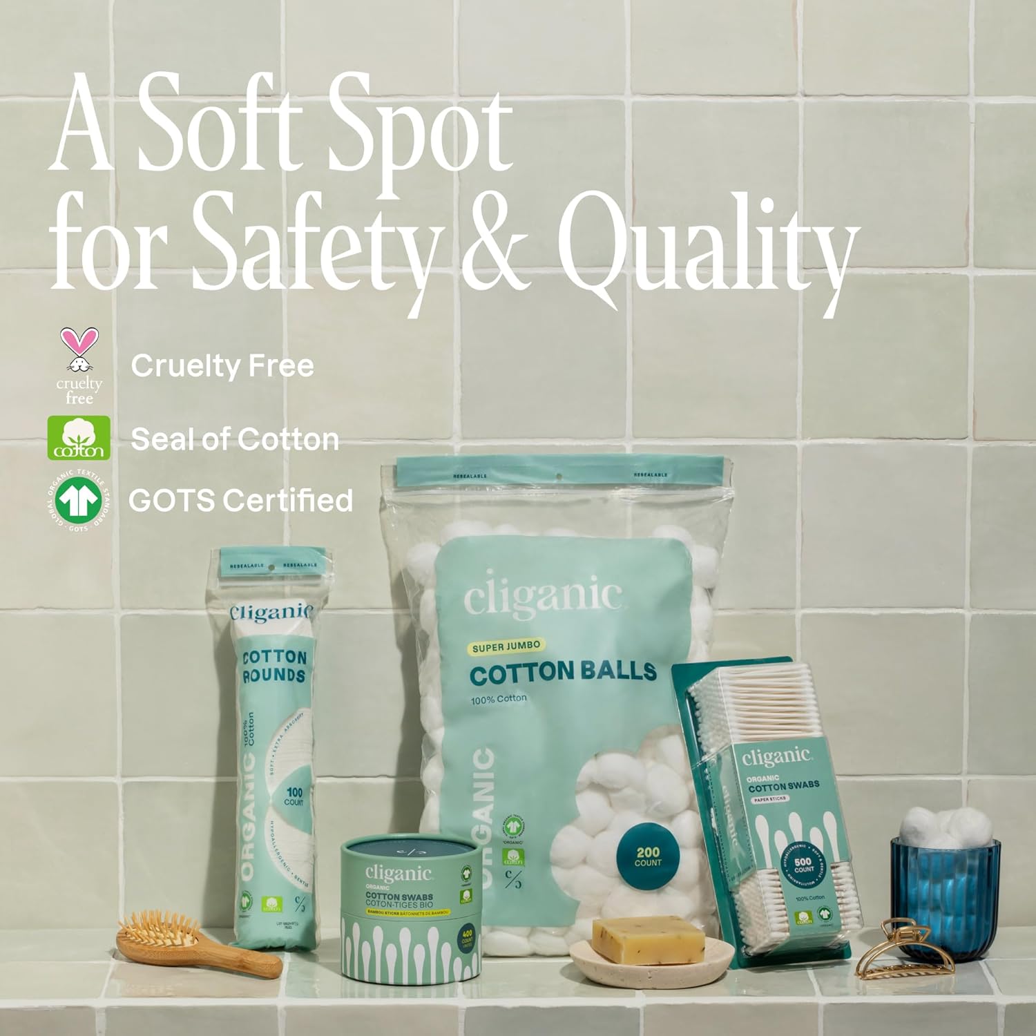 Cliganic Organic Super Jumbo Cotton Balls, 100 Count