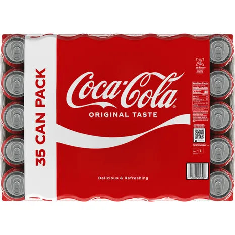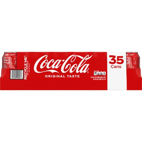 Coca-Cola, 35 ct, 12 oz, offers a refreshing and classic beverage choice that's perfect for any occasion. Each can contains the iconic Coca-Cola taste, with its unique blend of flavors that has been enjoyed by generations. This pack of 35 ensures that you'll have plenty of cans to share with family, friends, or coworkers at gatherings, parties, or simply to stock up for your personal enjoyment. The convenient 12 oz size makes it easy to take on the go or enjoy at home, providing a satisfying and thirst-quenching experience every time. With Coca-Cola, you can always count on a delicious and familiar flavor that never goes out of style.