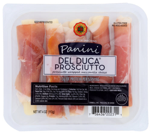 Del Duca Prosciutto Panini, 4 oz, is a savory delight that features thinly sliced, high-quality prosciutto. Perfect for an elegant snack or a light meal, these panini packs a punch of flavor with the rich, buttery taste of prosciutto, complemented by a touch of seasoning. Ideal for picnics, parties, or a quick gourmet bite on the go.