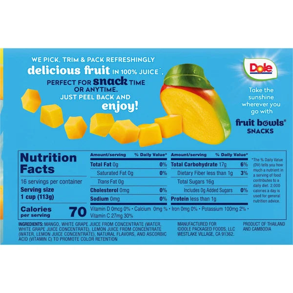 Dole Fruit Cup, Diced Mango, 4 oz, 16 ct
