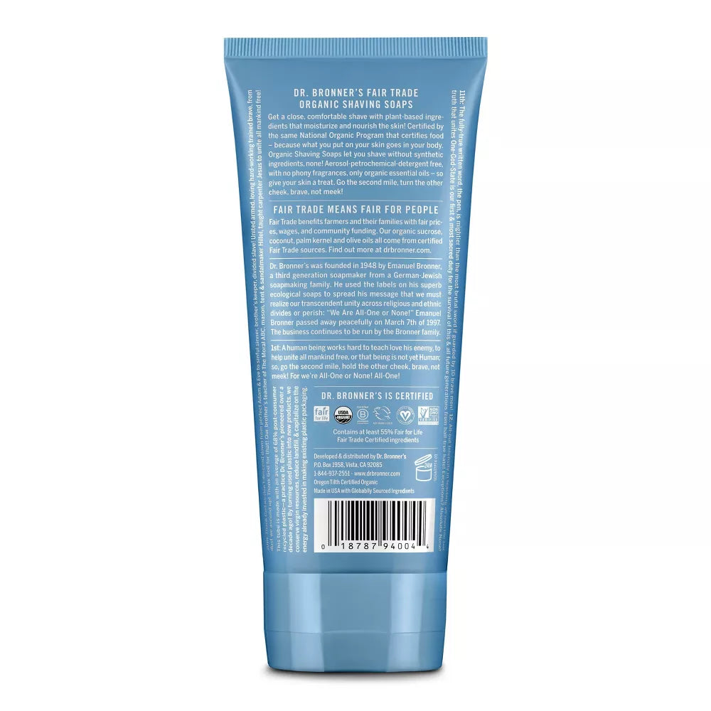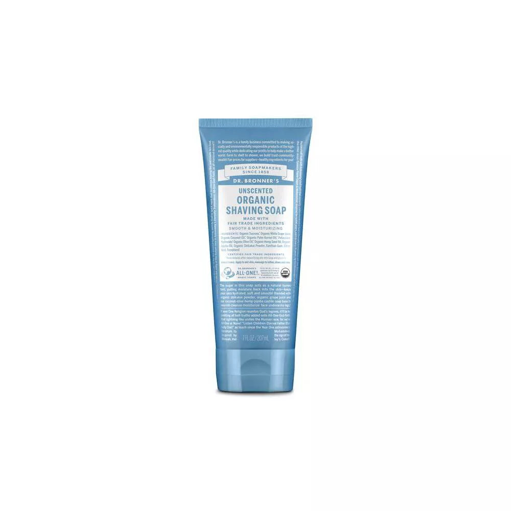 Dr. Bronner's Shave Soap Unscented is a high-quality and eco-friendly option for your shaving routine. This 7 fl oz bottle features a blend of organic ingredients, including coconut, olive, hemp, and jojoba oils, which create a rich and moisturizing lather. The soap is unscented, making it perfect for those with sensitive skin or a preference for fragrance-free products. It also contains organic shikakai powder, which has been used for centuries in India for its cleansing and soothing properties. Enjoy a close, comfortable shave with Dr. Bronner's Shave Soap Unscented, knowing it's made with natural and sustainable ingredients.