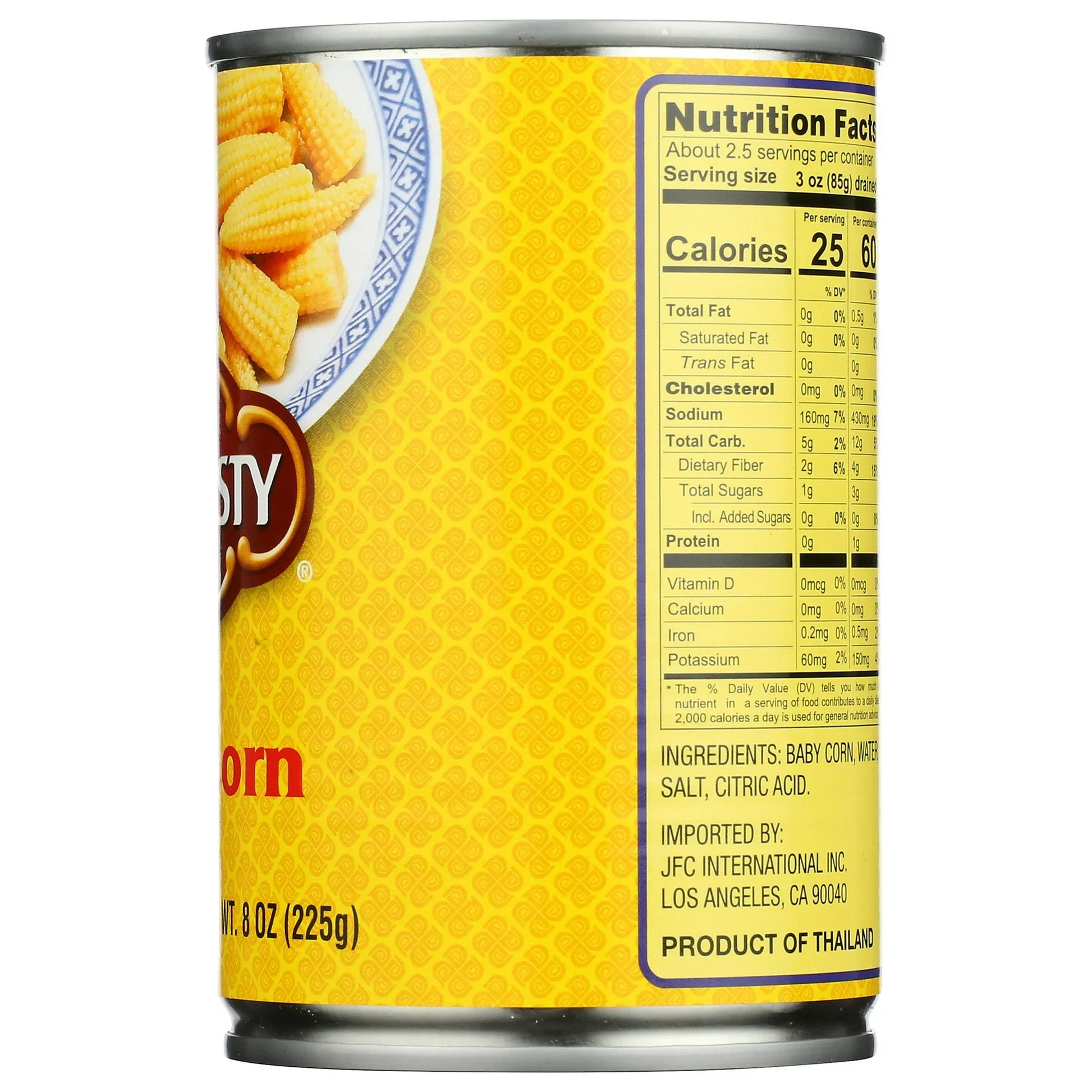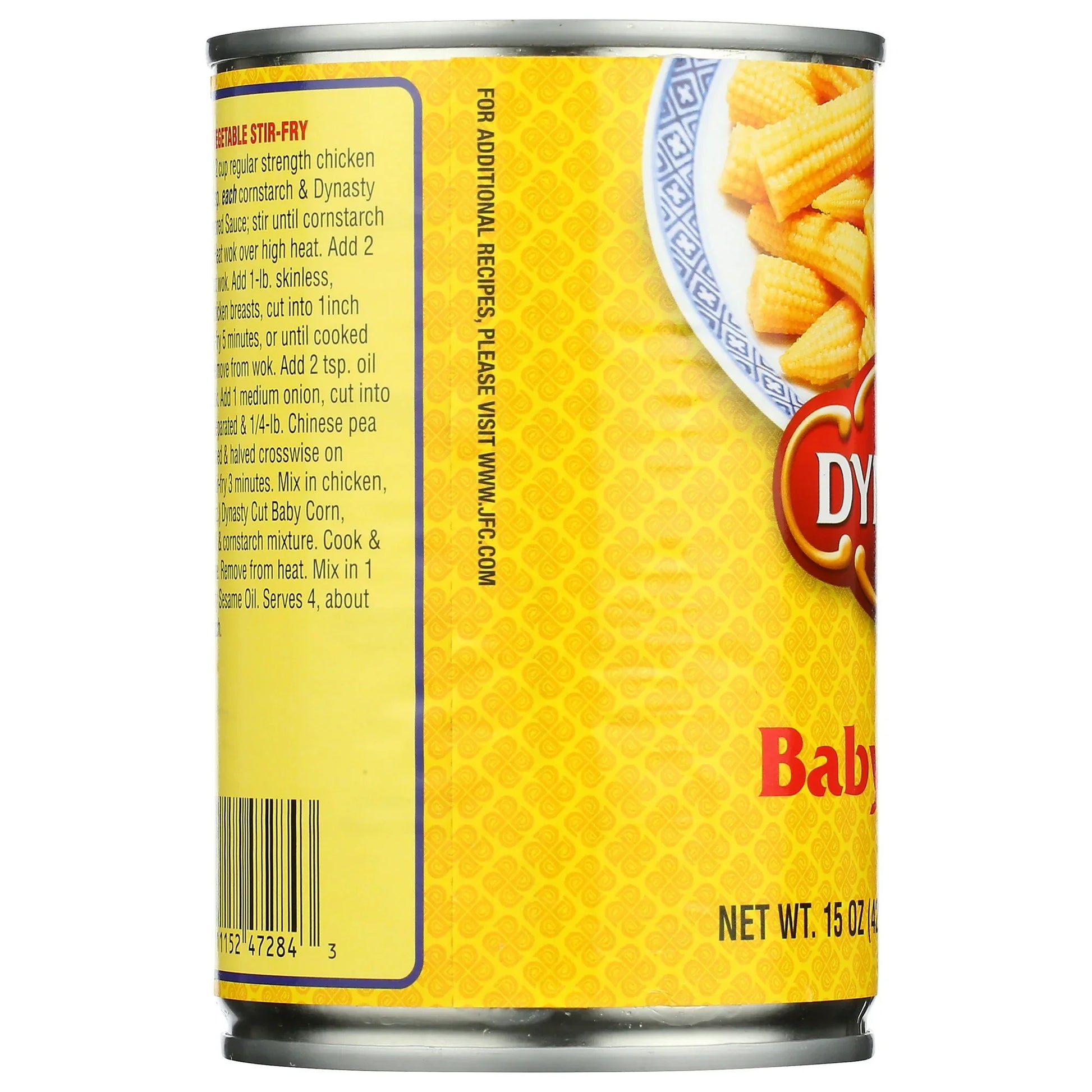 Dynasty Cut Baby Corn, 15 oz, is a versatile and convenient addition to your kitchen pantry. These baby corns are harvested at peak freshness and canned to preserve their crisp texture and natural sweetness. They are perfect for adding to salads, soups, stir-fries, and various other dishes. Dynasty Cut Baby Corn is low in calories and high in fiber, making it a healthy choice for any meal. Enjoy the quality and taste of Dynasty Cut Baby Corn, a staple in many Asian and international cuisines.