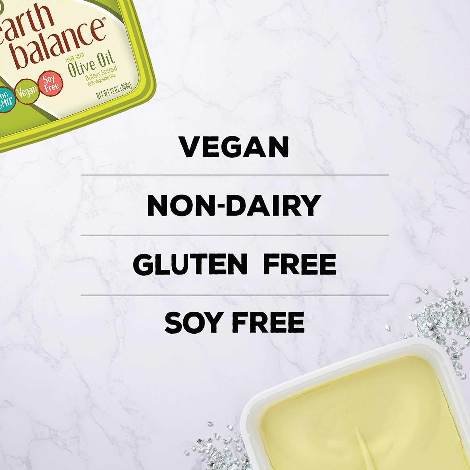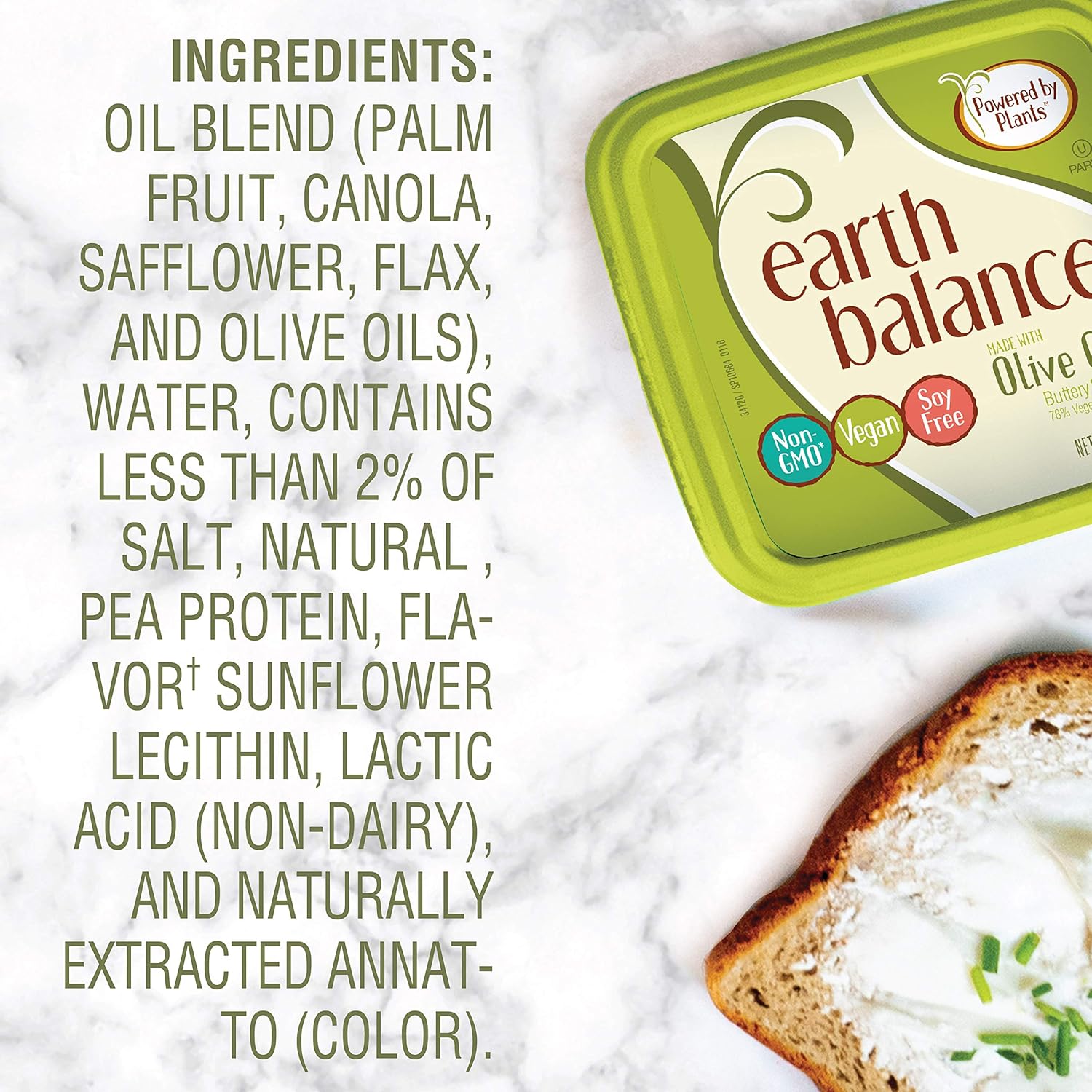 Earth Balance Olive Oil Buttery Spread, 13 oz - This spread features a smooth and rich flavor, made from a blend of expeller-pressed oils including extra virgin olive oil, canola, safflower, and flax. It's vegan, lactose-free, non-dairy, gluten-free, soy-free, non-GMO, and contains no MSG. Perfect for spreading on bread, vegetables, or using in your favorite recipes, it offers a deliciously buttery taste without any artificial ingredients. Enjoy the wholesome goodness of Earth Balance Olive Oil Buttery Spread in every bite.