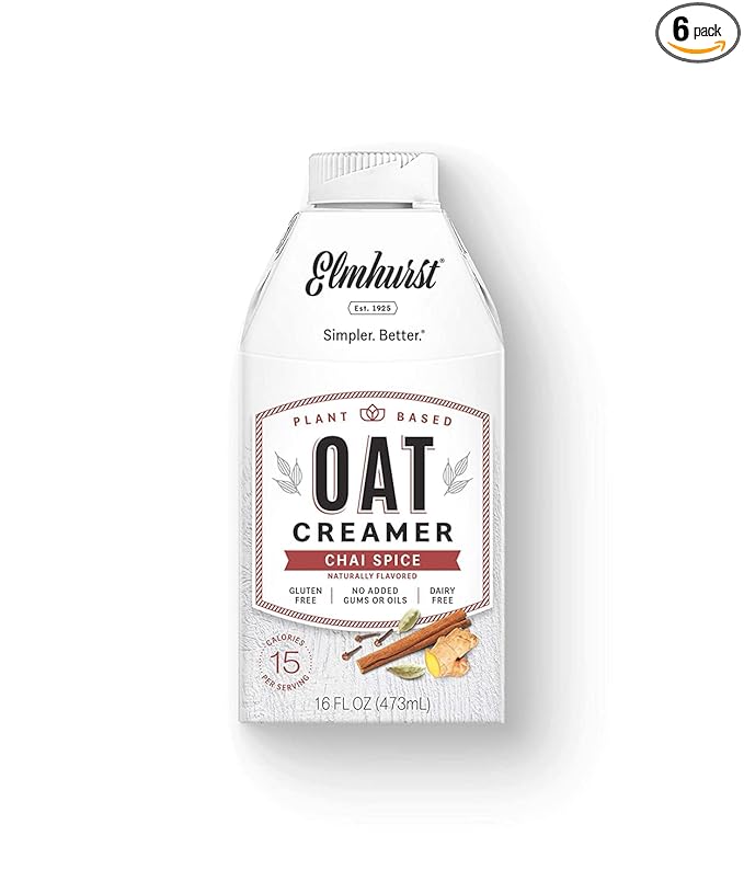 Got it! Let's talk about Elmhurst Chai Spice Oat Creamer, 16 oz. This creamy, plant-based coffee creamer is made from oat milk and infused with chai spices, providing a warm and aromatic flavor. It's vegan, dairy-free, gluten-free, non-GMO, and contains no artificial flavors or preservatives. Enjoy a cozy and flavorful boost to your daily brew!