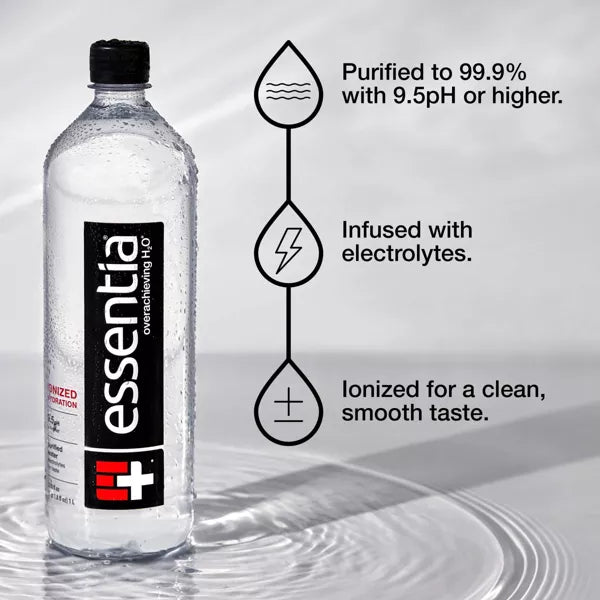 Essentia Purified Water, 1.5L, is a premium ionized alkaline water that's 99.9% pure with a smooth, clean taste. Enhanced with electrolytes, it has a pH of 9.5 or higher, making it perfect for staying hydrated and refreshed throughout the day. Ideal for any setting, from the gym to the office, this water helps you maintain peak performance and well-being.