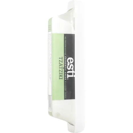 Esti Foods Tzatziki is an authentic Greek dip made with pure Mediterranean ingredients. This tzatziki combines 100% authentic Greek yogurt from Thessaly, Northern Greece, with fresh cucumbers from the island of Crete. It is free from preservatives and chemicals, ensuring a natural and wholesome flavor. Enjoy the balanced flavors inspired by the Mediterranean diet with Esti Foods Tzatziki, perfect for dipping, spreading, or adding to your favorite dishes.