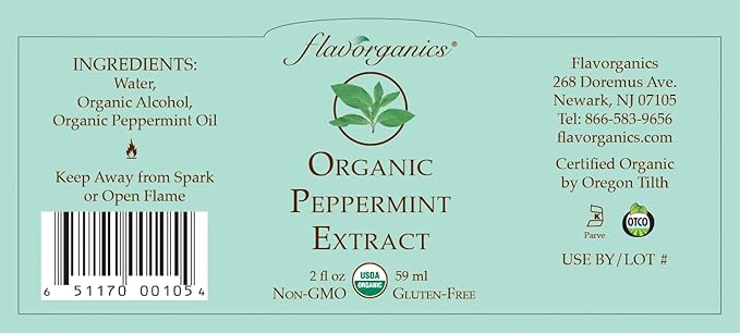 Flavorganics Organic Peppermint Extract, 2 oz, is a versatile and aromatic addition to your kitchen. Made with certified organic peppermint oil, this extract is non-GMO, gluten-free, and contains no artificial ingredients. It's perfect for adding a fresh, minty flavor to your favorite recipes, including baked goods, beverages, and desserts. Enjoy the high-quality and natural taste of Flavorganics Organic Peppermint Extract, a must-have for any home cook.
