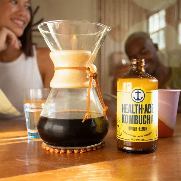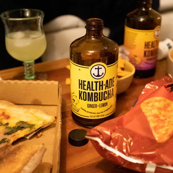 Health Ade Organic Vegan Ginger Lemon Kombucha is a refreshing and healthy beverage option. This 16 oz bottle features a zesty blend of ginger and lemon, providing a tangy and invigorating flavor. Made with organic ingredients, this kombucha is packed with probiotics, which support gut health and overall well-being. It's also vegan, gluten-free, and non-GMO, making it a great choice for those with dietary restrictions. Enjoy the bubbly goodness of this kombucha as a delicious and nutritious addition to your daily routine.