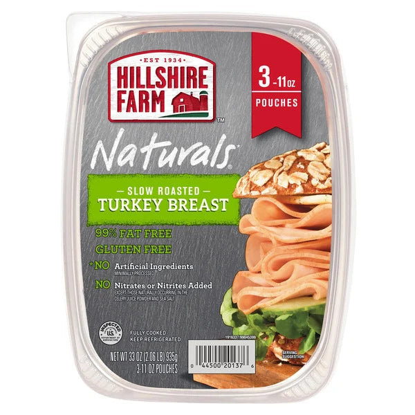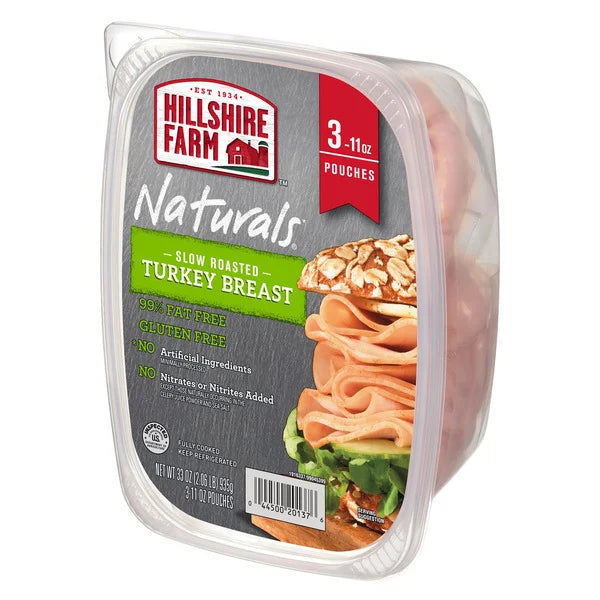 Hillshire Farm Naturals Slow Roasted Turkey Breast, 33 oz, offers a delicious and convenient deli meat option. Each package contains 33 ounces of slow-roasted turkey breast, made with no artificial preservatives, nitrates, or nitrites. This turkey breast is perfect for sandwiches, salads, wraps, or simply enjoying on its own. With its rich, savory flavor and high-quality ingredients, Hillshire Farm Naturals Slow Roasted Turkey Breast is a great choice for any meal.