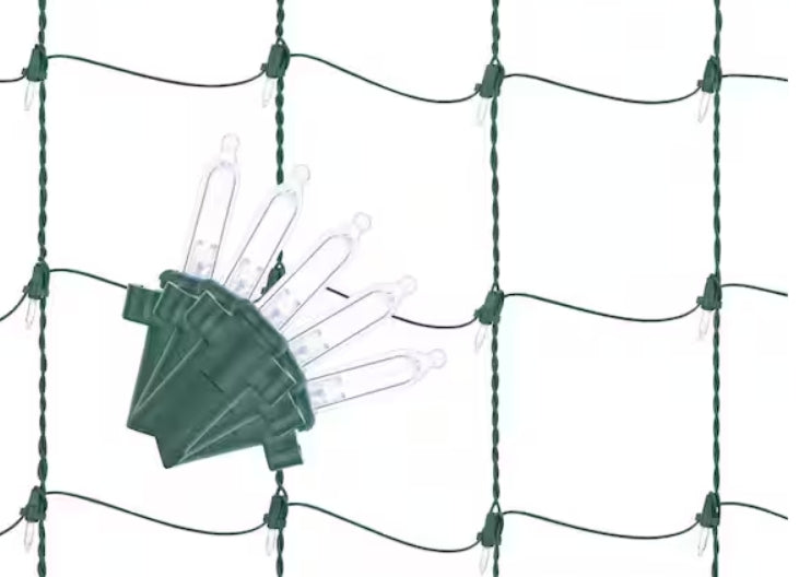 Add a festive sparkle to your bushes and hedges with these Home Accents Holiday 150 Cool White Mini LED Net Lights. Featuring 150 mini LED lights and an ample 4 ft. x 6 ft. lighted area, this dazzling net set channels a radiant display to spread festive illumination in your home or front yard. The net's green wire blends smoothly with trees and shrubs for a seamless appearance.